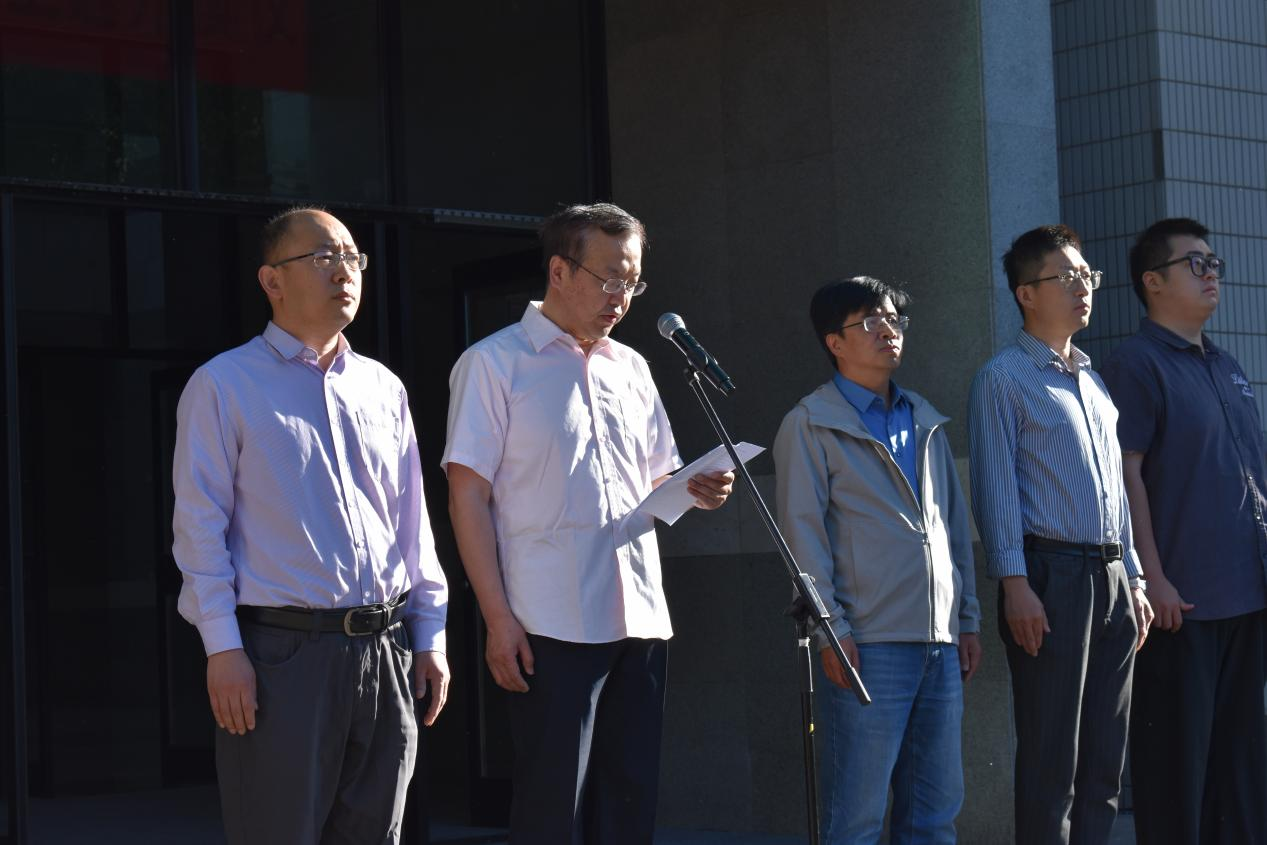 仪式开始,贾卓生为国旗仪仗队授旗。在庄严的注目礼下,伴随铿锵有力的国歌,鲜艳的五星红旗冉冉升起,迎风飘扬。