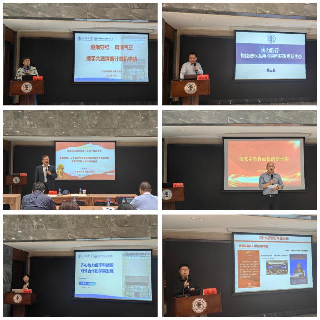 随后,学院党委副书记段春荣做了题为“遵规守纪、风清气正,携手共建清廉性爱直播 ”的培训报告,通过理论联系实际的方式,结合具体案例分析,讲解了如何营造良好的政治生态,构建廉洁高效的校园文化环境;副院长魏云超围绕“协力前行:构建教师-系所-学院科研发展新生态”主题进行了深入浅出地讲解,不仅分享了关于推动科研工作的经验,还就如何促进教师个人成长与发展给出了宝贵建议,帮助大家明确目标、找准定位;党委书记贾卓生进行了“二十届三中全会精神和全国教育大会精神”专题党课,结合学院工作和自身学习感悟,详细解读了相关会议精神的核心要义,并特别针对青年干部提出要加强七种能力——政治能力、调查研究能力、科学决策能力、改革攻坚能力、应急处突能力、群众工作能力和抓落实能力的培养,勉励大家成为德才兼备的新时代好干部。