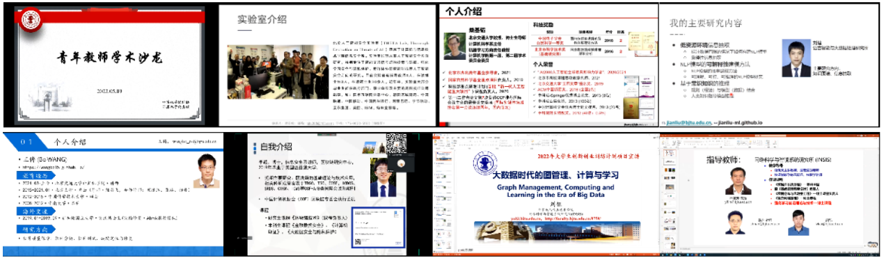 除了指导教师团队介绍外,在5月9日的“青年教师学术沙龙”活动中,7位青年教师代表为同学们带来精彩的学术报告,深入浅出地为学生们讲解了自然语言处理、软件质量保障、大数据的图管理与计算、人工智能安全等当前热门研究方向,并根据自身研究设计多个适合本科生的大创题目。