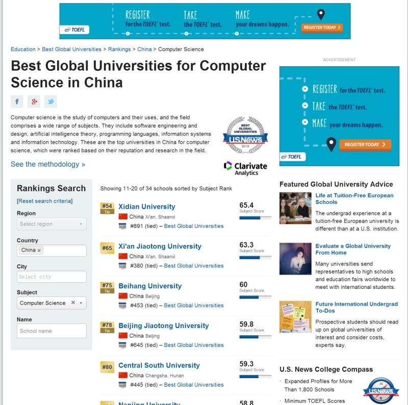 计算机科学学科能实现新突破,成为US News排名第78名,充分体现性爱直播