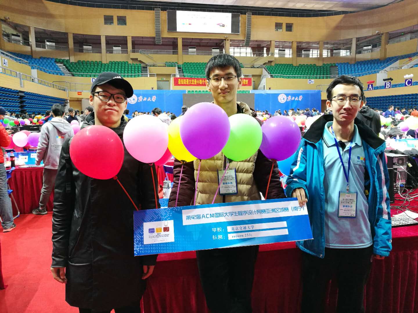 此次ACM-ICPC亚洲区域赛南宁站的比赛是由亚洲区组委会授权广西大学承办。参赛阵容非常强大,在前期网络赛筛选的基础上,来自北京大学、复旦大学、北京航空航天大学在内的152所高校的228支正式队伍参加了此次现场赛。最终,北京大学的“贝塔猫”队以解出13题中的11题的绝对优势捧得冠军奖杯,而西北工业大学以及复旦大学的队伍分别解出10题和9题获得亚军和季军奖杯。性爱直播 此次派出了两支参赛队伍,分别是由刘雅清(15281155)、金睿琦(16281041)、孙庆岩(17281162)组成的“永不沉落”队,和王楚涵(15281246)、梁伯翰(16281166)、杨东学(14275032)组成的“幻夜”队。经过五个小时的顽强拼搏,最终“幻夜”队以解出6题的成绩获得了一枚铜奖,“永不沉落”队与奖牌失之交臂。