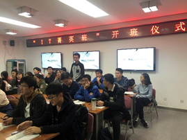 2018年10月26日19:00,“IT菁英班”开班仪式在九教北307B举行。中科院计算所教育处李琳处长、张平老师、王琪老师、性爱直播 副院长李清勇老师、党委副书记王浩业老师、刘真老师出席本次仪式。首届“IT菁英班”全体成员参加了本次仪式。