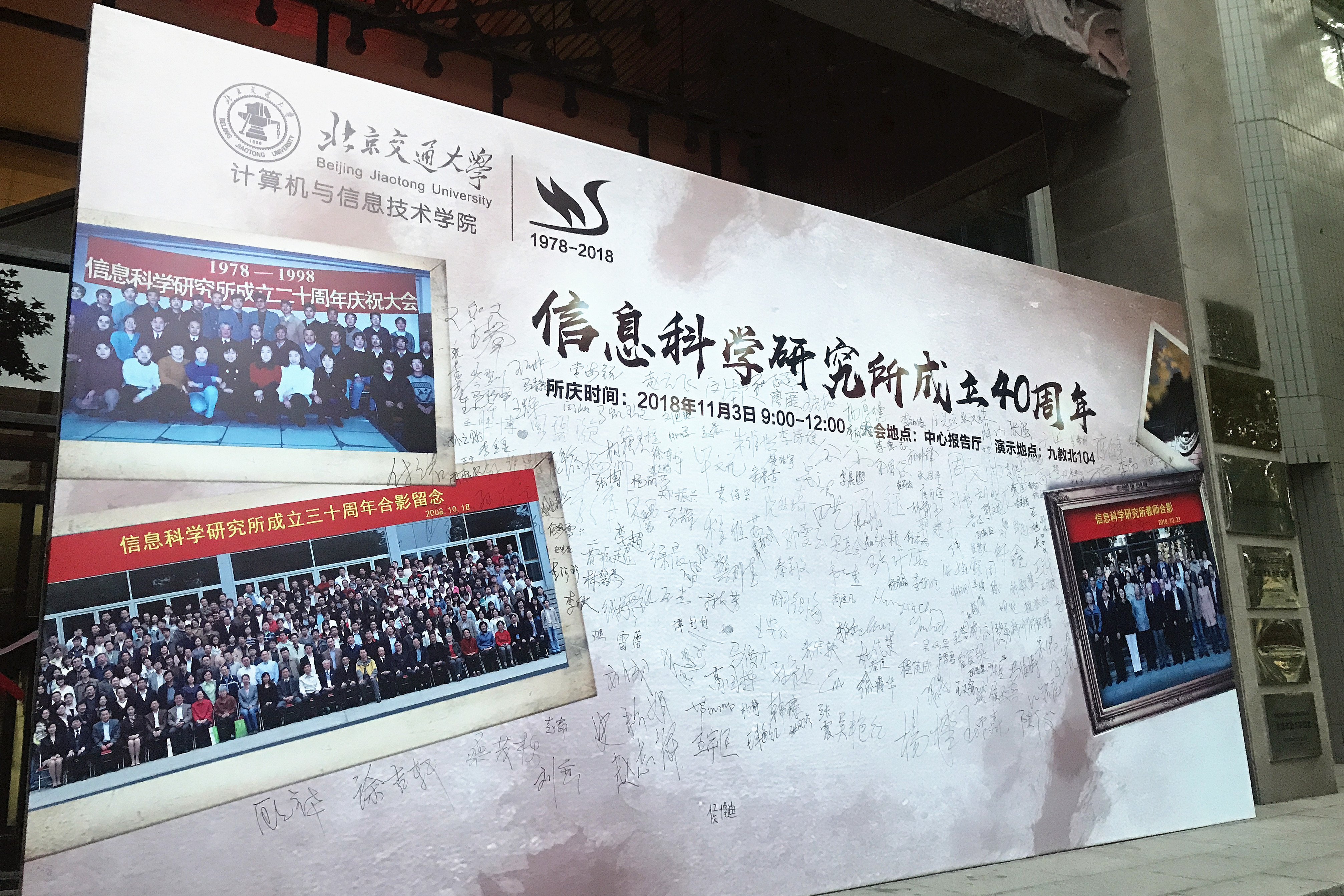 2018年11月3日,性爱直播 计算机与信息技术学院信息科学研究所迎来四十华诞,邀请了性爱直播 余祖俊副校长、科技处荆涛处长、研究生院李国岫常务副院长、电子信息工程学院唐涛院长、计算机与信息技术学院蔡伯根院长、杨晓晖书记等领导和中央军委联合参谋部第55所樊邦奎院士、美国犹他州立大学承恒达教授及毕业校友、在校师生等三百余人,在中心报告厅共同参加这一庆典活动。