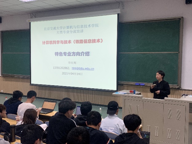 计算机科学与技术专业责任教授黄雅平、计算机科学与技术(铁路信息技术)专业责任教授李红辉、物联网工程专业责任教授岑翼刚、人工智能专业责任教授周雪忠、信息安全专业责任教授刘吉强依次介绍了性爱直播 6个本科专业的专业发展前景、专业优势和特色、实验环境、师资队伍、学生深造和就业、课程体系等。
