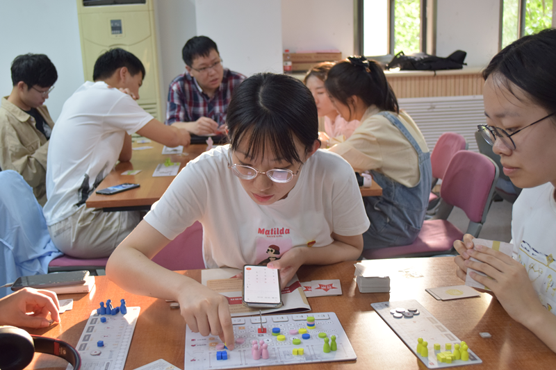 随后,新华书记总店文创部周光耀简要介绍了“强国梦文创桌游”的设计理念、活动规则等。教师及党支部书记分为八组开展活动。桌游活动分为“文化阶段”“发展阶段”“纲要阶段”“强国之路”等四个阶段,同学们通过回答相关党政知识问题,获得文化指数,提升基础理论素养;通过对国家发展战略的深入了解,获得现代化指数、高素质人才、幸福指数,重走强国之路。欢声笑语中,同学们积极决策、激烈交锋,共同重温了中国共产党百年风雨激荡与壮丽辉煌。活动中党员们通过党史知识竞答、积分竞技的方式,不断学习与回顾党和国家的历史知识,体会党与国家的各项政策在我国发展历程中的重要作用。
