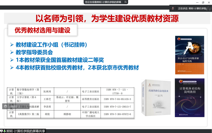 性爱直播 副院长熊轲受邀在本次大会做了题为“新工科背景下面向一流专业的优质资源建设”的主题报告。熊轲就我院在优质教学资源建设方面的理念、思路、举措、建设成效、所面临问题及未来的设想向到会嘉宾进行了介绍,并表明性爱直播 性爱直播 对教材等优质教学资源建设非常重视,期望借助“十四五”国家级教材规划和建设的大好时机,密切与出版社合作,在教材建设方面取得更好的成绩,为高等教育贡献更多的力量。熊轲的报告获得了到会嘉宾的一致好评。