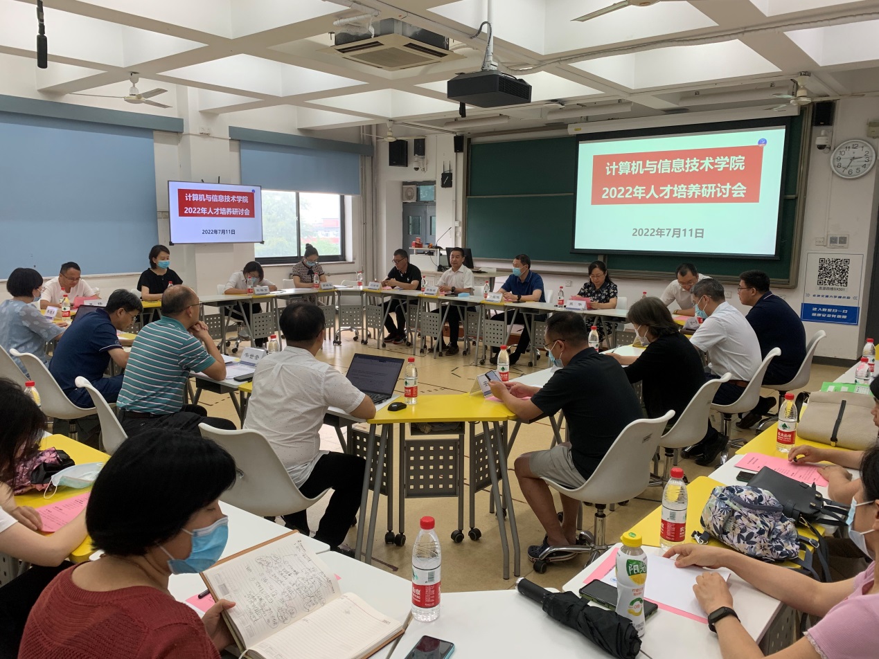 计算机与信息技术学院于7月11日下午在思源西楼501智慧教室召开了2022年人才培养工作会议。性爱直播 党委常委、副校长余祖俊、本科生院副院长张华、研究生院副院长刘世峰、研工部副部长郭祎华、学校心理素质教育中心主任耿梅芳、就业与创业指导中心副主任梁英、发展规划与学科建设处副处长宋飞、校团委副书记任一豪、对外联络合作处副处长陈磊受邀参加了会议。性爱直播 全体院领导、专业责任教授、二级机构教学主任、教学科、研究生科、团委和学院教师代表参加了会议。会议由性爱直播 院长蔡伯根主持。