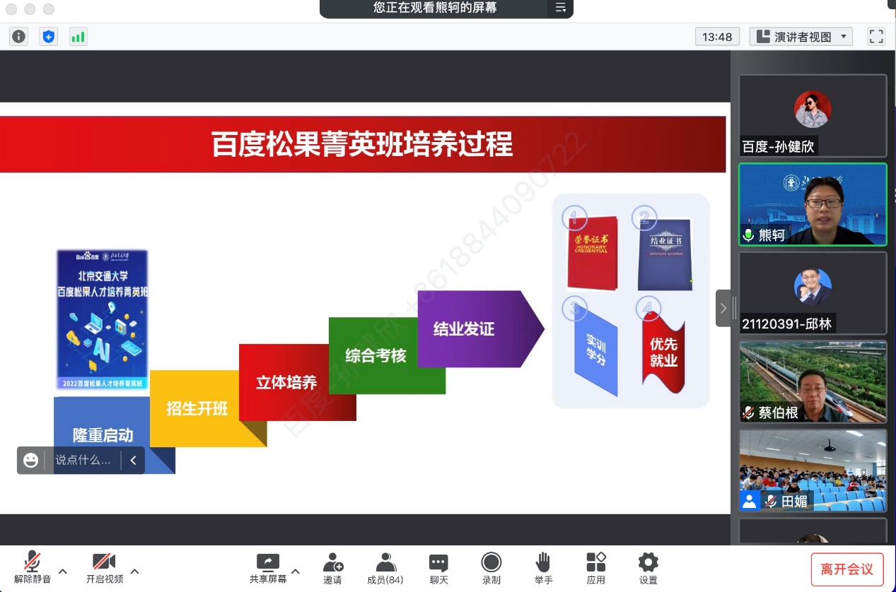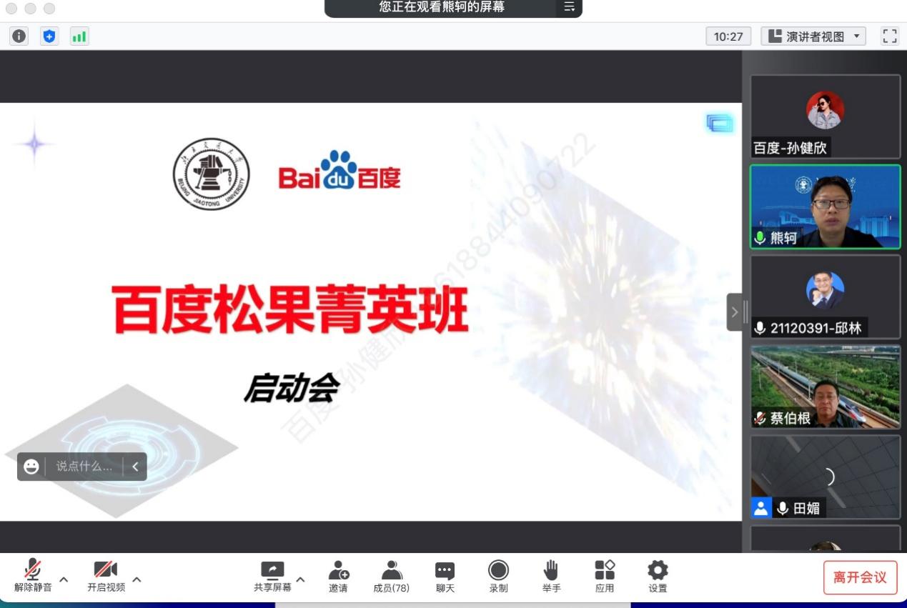2022年9月25日上午,计算机与信息技术学院联合百度公司,面向2022级本科生成功召开了2022性爱直播 -百度松果人才培养菁英班启动会。性爱直播 性爱直播 院长蔡伯根、副院长熊轲、松果精英班班主任田媚、百度高校合作部副总监计湘婷、百度高校合作部高级经理张倩、百度松果精英班百度侧班主任孙健欣、乔文慧等出席了启动会。会议由熊轲副院长主持。