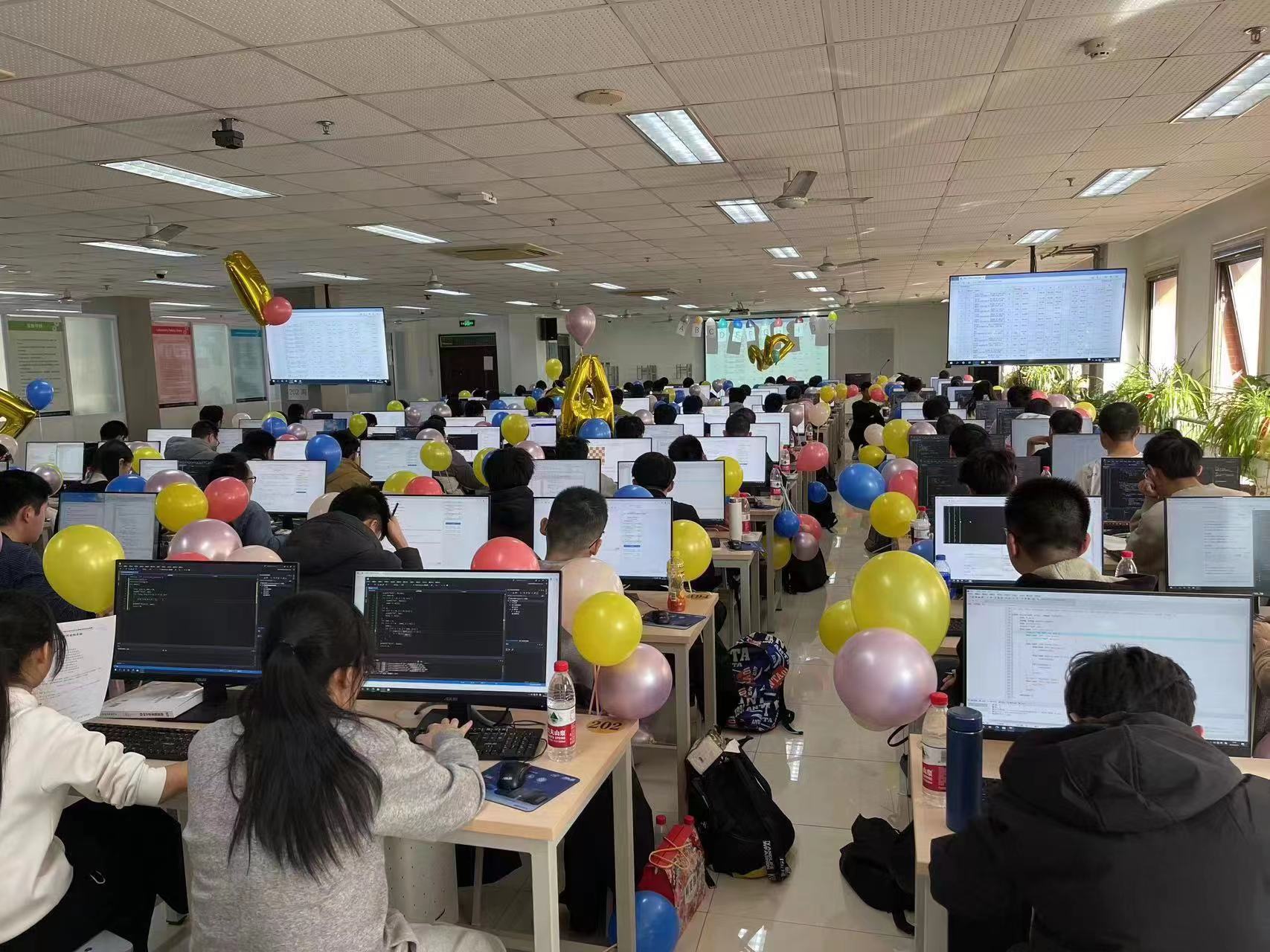 此次新生程序设计竞赛共有来自包括威海校区在内的全校13个学院的274名低年级同学报名参加,蓝桥杯选拔赛全校有来自13个学院的257名同学报名参赛。鉴于报名参赛的人数已远远超出机房现场的容量,本次比赛在2022.11.26日启用了网络预赛,经过代码查重等环节,根据机房容量确定全校共有247人获得现场赛参赛资格,其中新生赛99人、蓝桥杯选拔赛148人。本次赛事活动还邀请了中国地质大学(北京)等兄弟院校的部分同学以线上模式参赛。比赛以“一校两区”的模式举办,同一份赛题、同一个排行榜单、不同年级的同学同台竞技,在保障比赛公平、公正和安全的前提下,比赛在主校区和威海校区的机房同时开展。两项赛事、同一榜单、相同赛题、两个赛区,初生牛犊和经年老鸟在同一个平台上同台竞技、展示能力、切磋技艺。不同现场赛点的同学都只能访问同一个比赛服务器,查看同一个排行榜单,除此之外不能访问任何其他网络资源;参赛选手提交的所有代码均由机器依据数据自动进行评测,排除了人为因素,保障了赛事的公平公正。