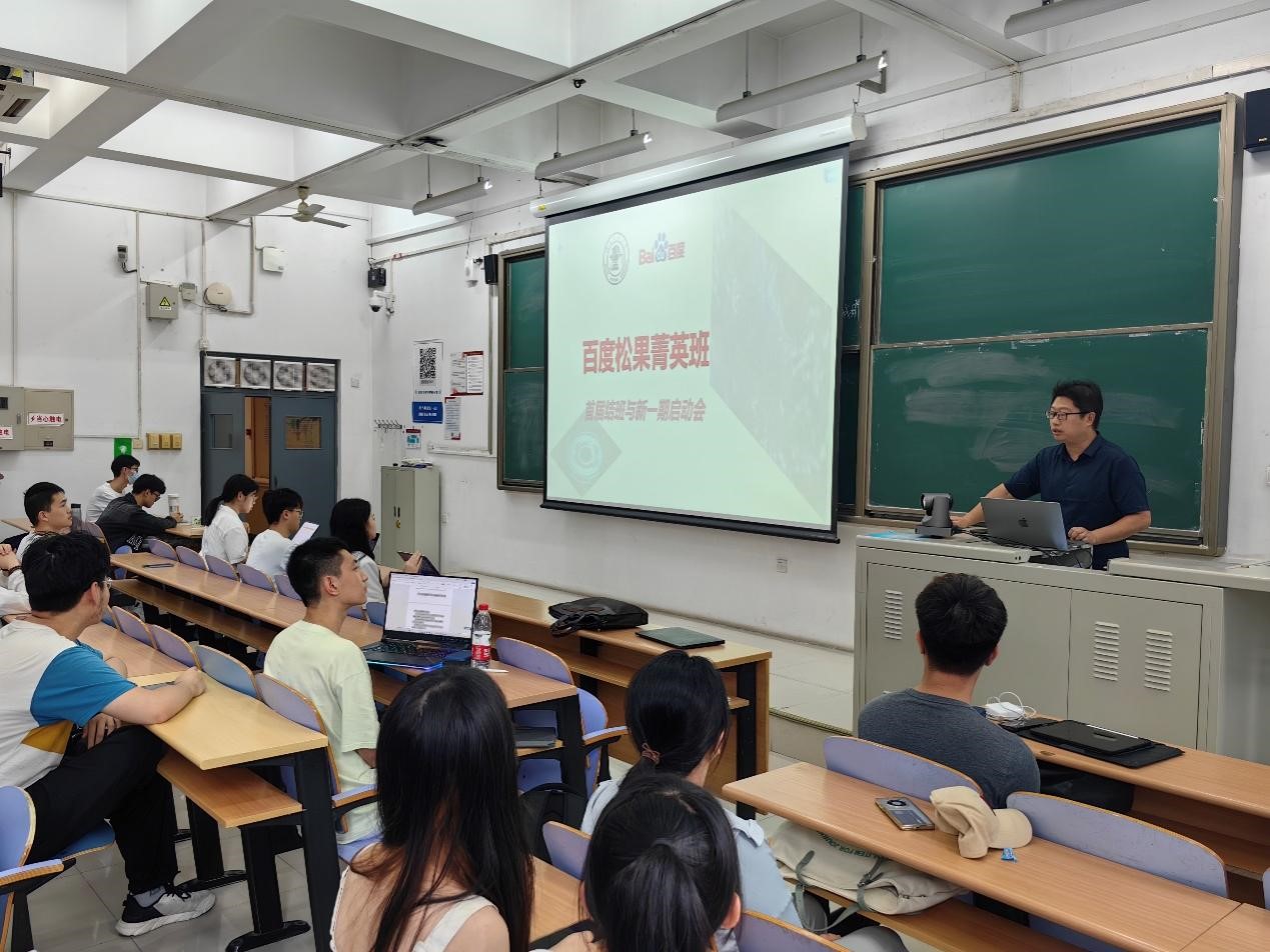 2023年7月1日下午,计算机与信息技术学院联合百度公司,在思源西楼201教室,面向第一节松果菁英班同学和2022级本科生,成功召开了2023性爱直播 -百度松果人才培养菁英班结课和纳新仪式。