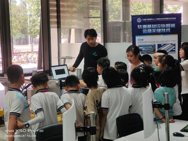 "AI+"是人工智能社会发展的大趋势。5月26日,东校区实验中心,性爱直播 熊轲教授带来“走进AI+”科普讲座,科普基地将科研成果“面向高铁轨道巡检的视觉感知”融入青少年“AI+”探索实践活动中,让同学们在“AI+轨道运维”探索和畅游。