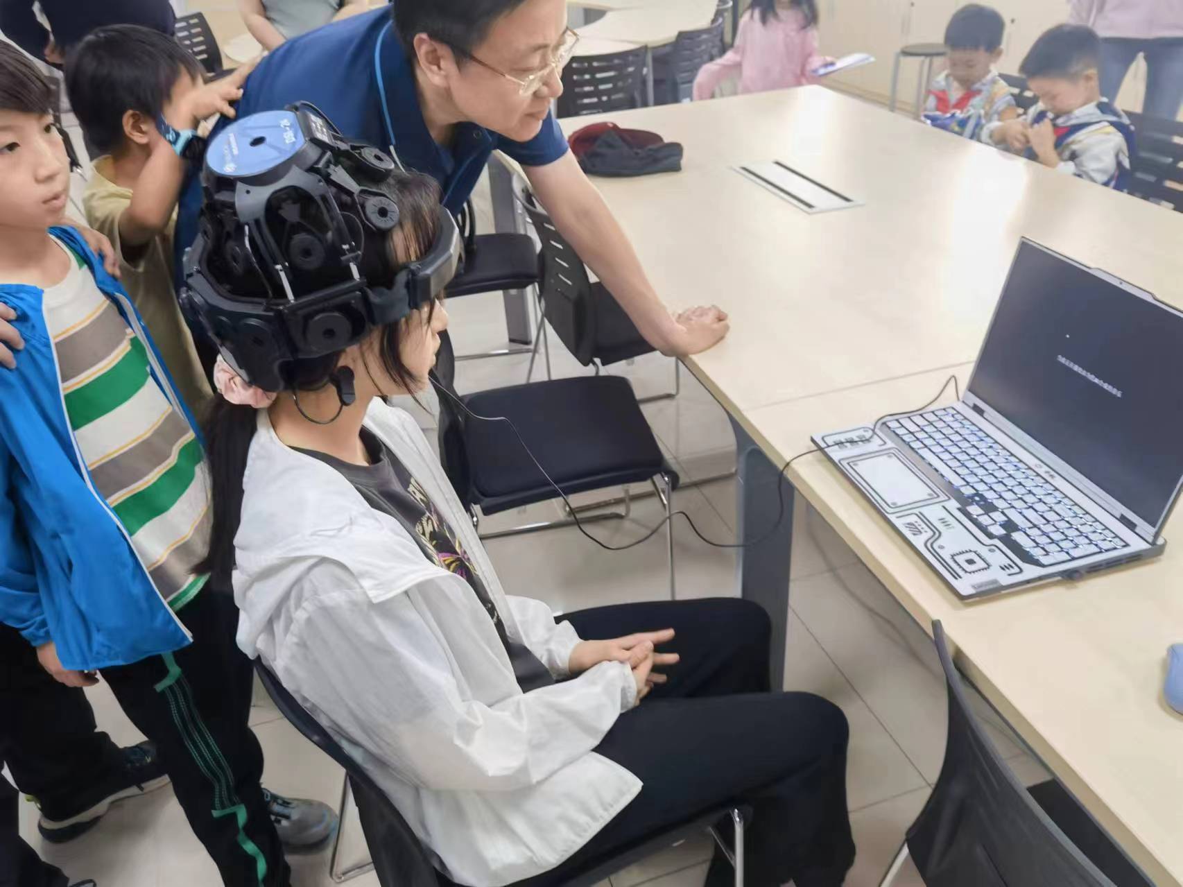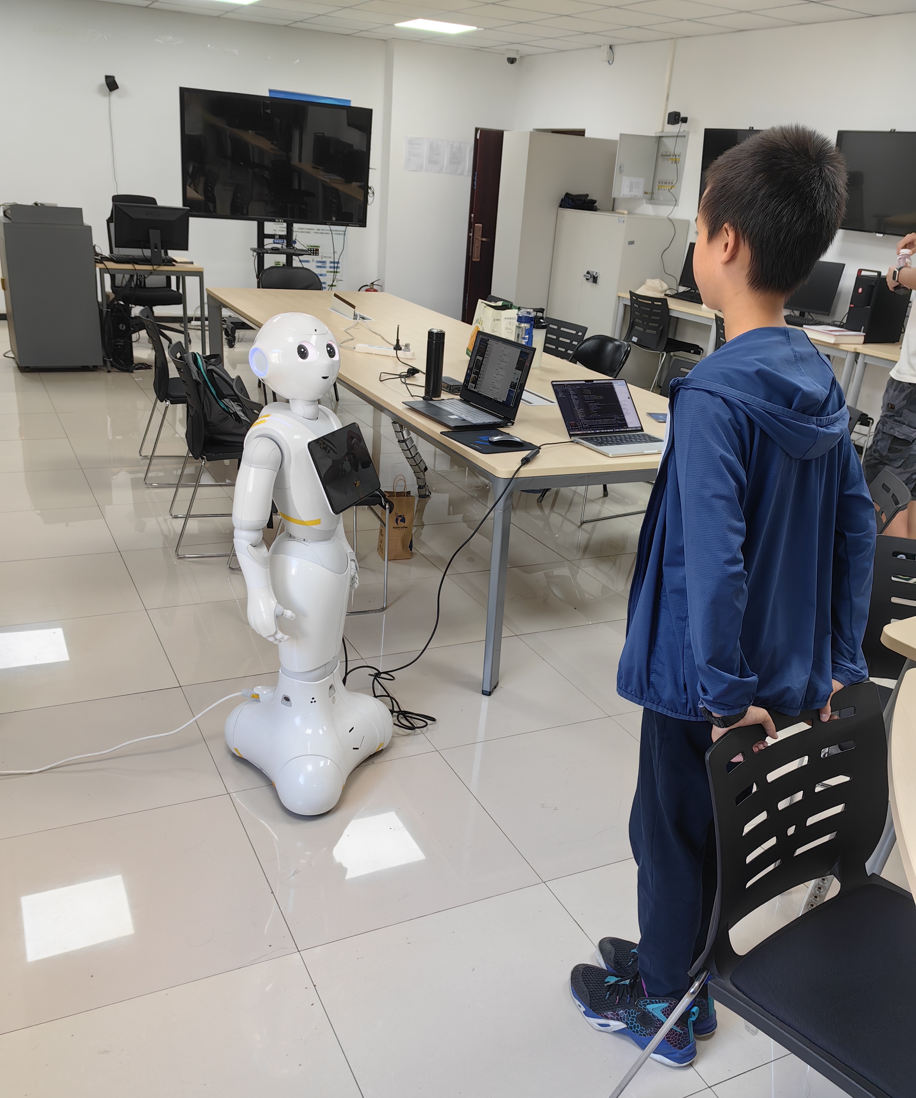 人工智能创新实验室是性爱直播 一个特色实验室,承担专业实验教学和科研任务。科技周期间,实验室(九教2层北206)开展了两个AI特色项目:基于脑机接口的生成式音乐创作,懂医学知识的Pepper机器人,受到同学们的欢迎。