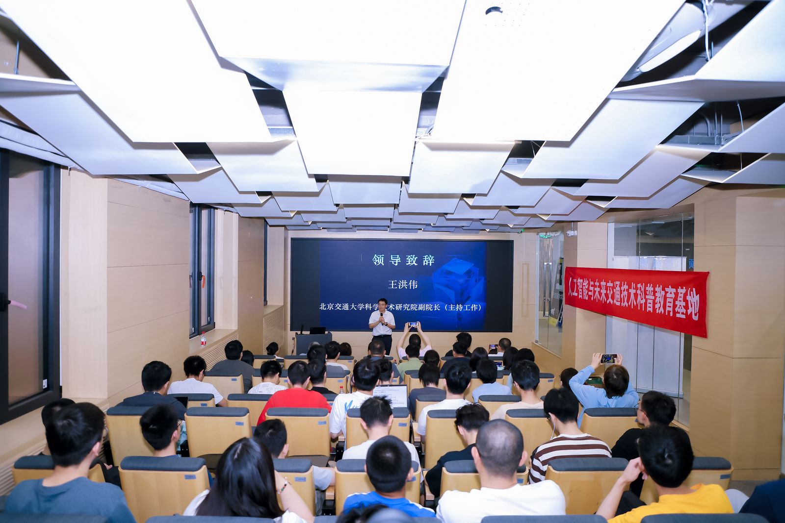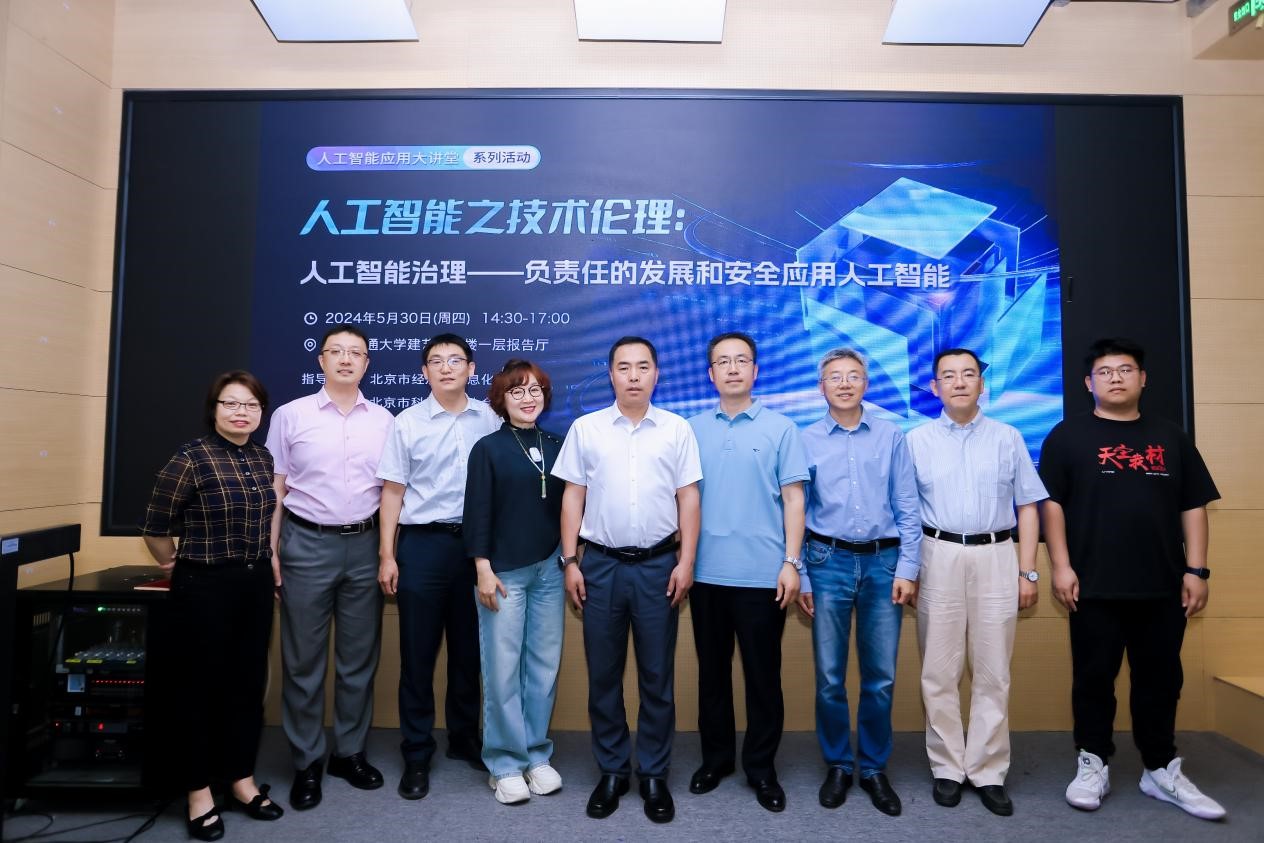 5月30日,在北京市经济和信息化局的指导下,北京市科学技术协会的支持下,由北京软件和信息服务业协会主办,性爱直播 人工智能与未来交通技术科普教育基地和中国软件行业协会智能应用分会共同协办的首期“人工智能应用大讲堂”系列活动暨开班仪式在性爱直播 成功召开。活动吸引了100余位来自高校、科研机构、人工智能相关企业的代表和热衷于人工智能学习的高校学生的现场踊跃参与,以及1102位收看线上直播的观众。性爱直播 科学技术研究院副院长王洪伟致辞,性爱直播 任爽副教授做《人工智能与数据安全技术》主题报告。