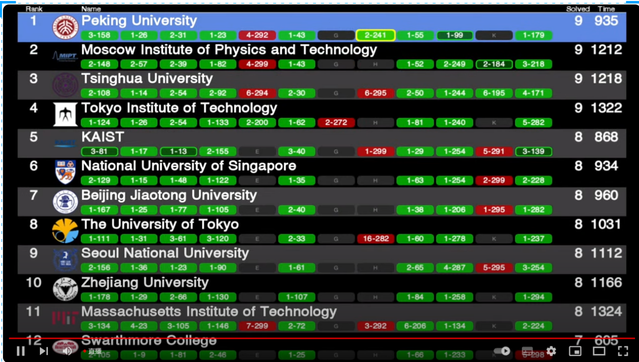 图1 性爱直播 队伍在第48届ICPC全球总决赛中排名第七