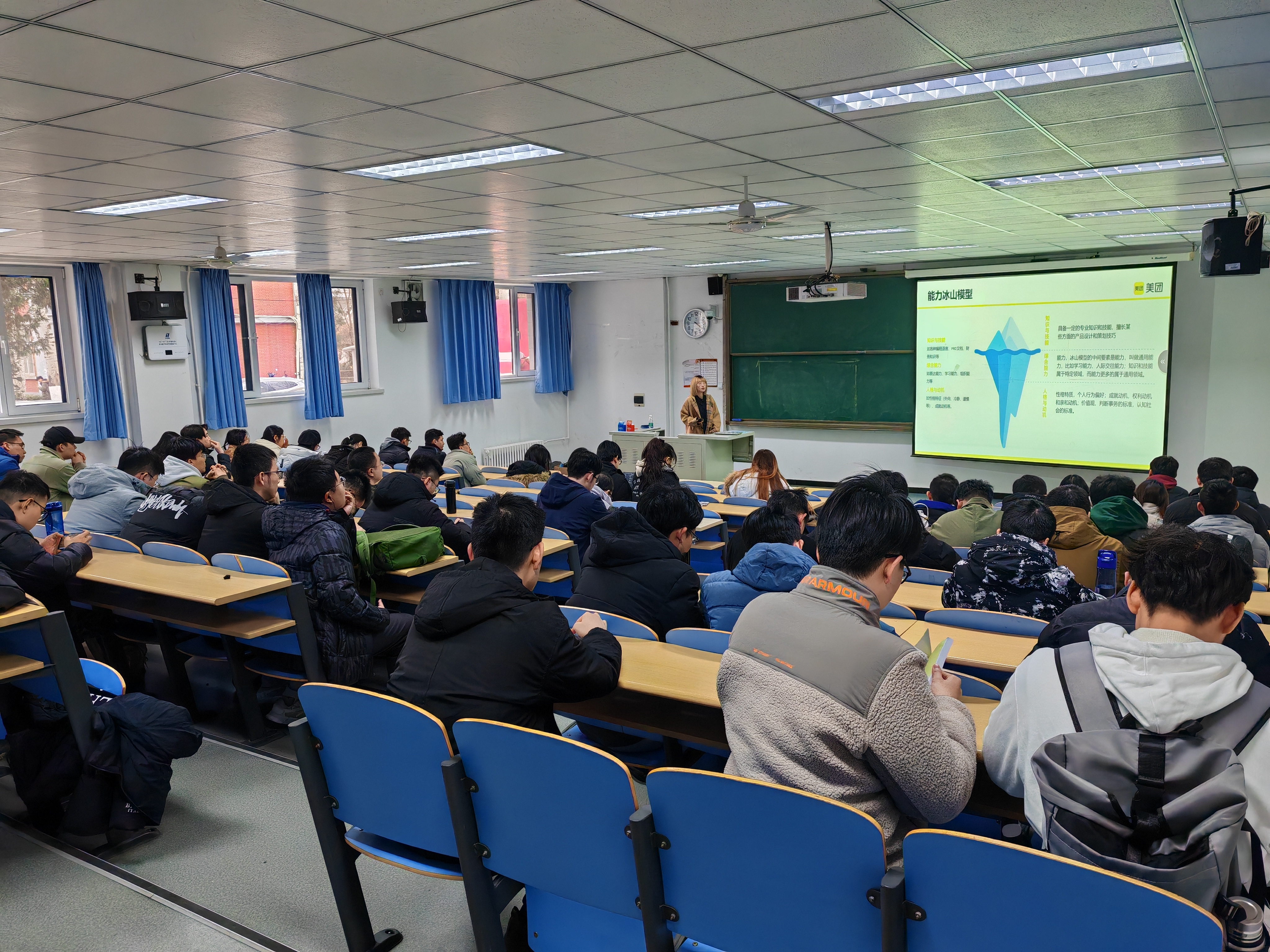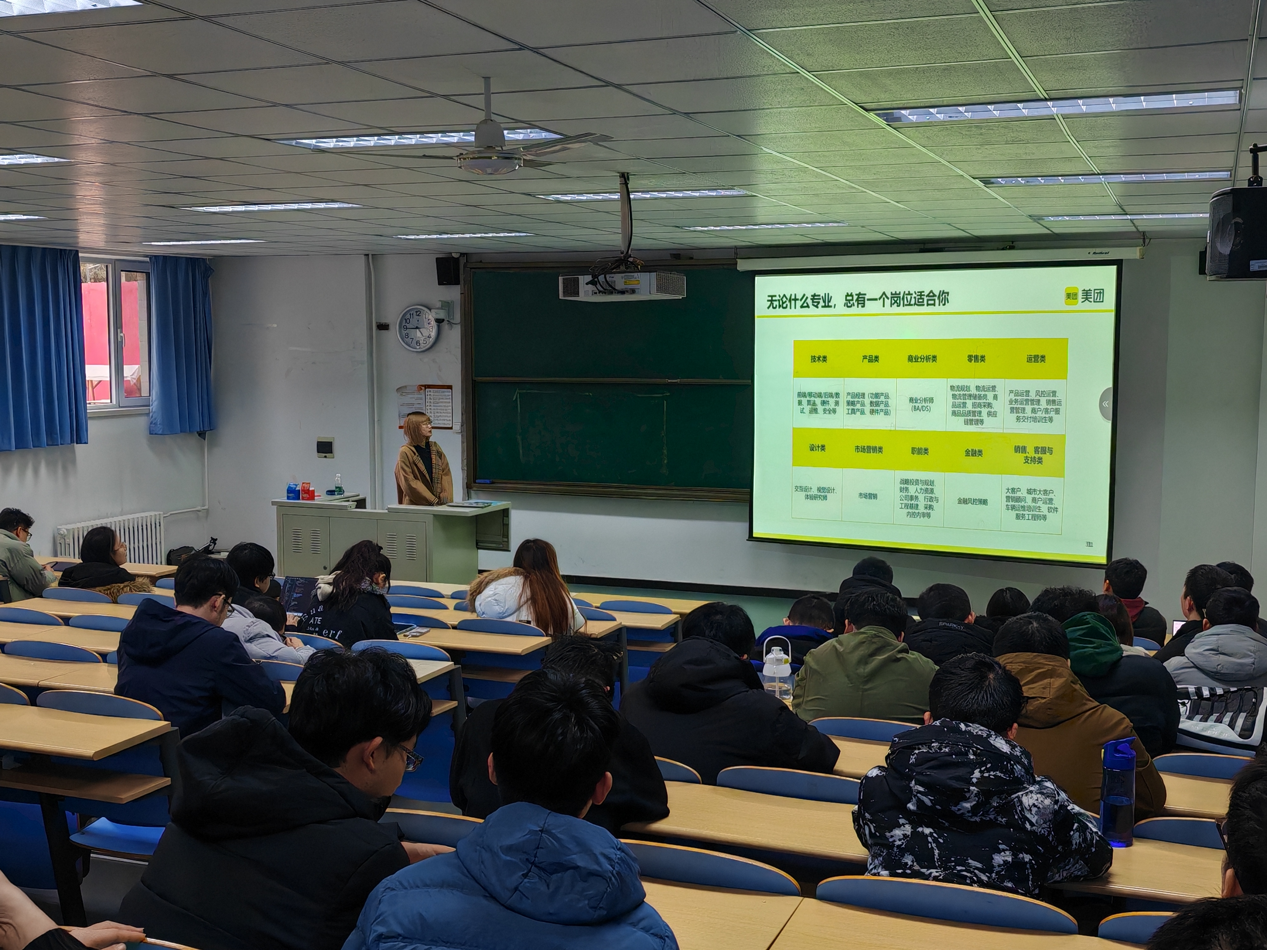 在九教东102召开就业指导讲座,由美团HR赵雪榕主讲,学院24届及25届毕业生参加讲座。